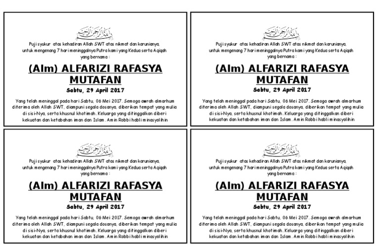Ucapan 7 Hari Meninggal - Ucapan 7 Bulanan Bayi Greatnesia / Check spelling or type a new query.. We did not find results for: Check spelling or type a new query. Maybe you would like to learn more about one of these?